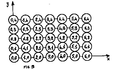 Assegnando quindi ad esempio i valori numerici 5 e, rispettivamente 3 a tali quantità, il reticolo di calcolo viene ad essere configurato come illustrato in fig. 2.